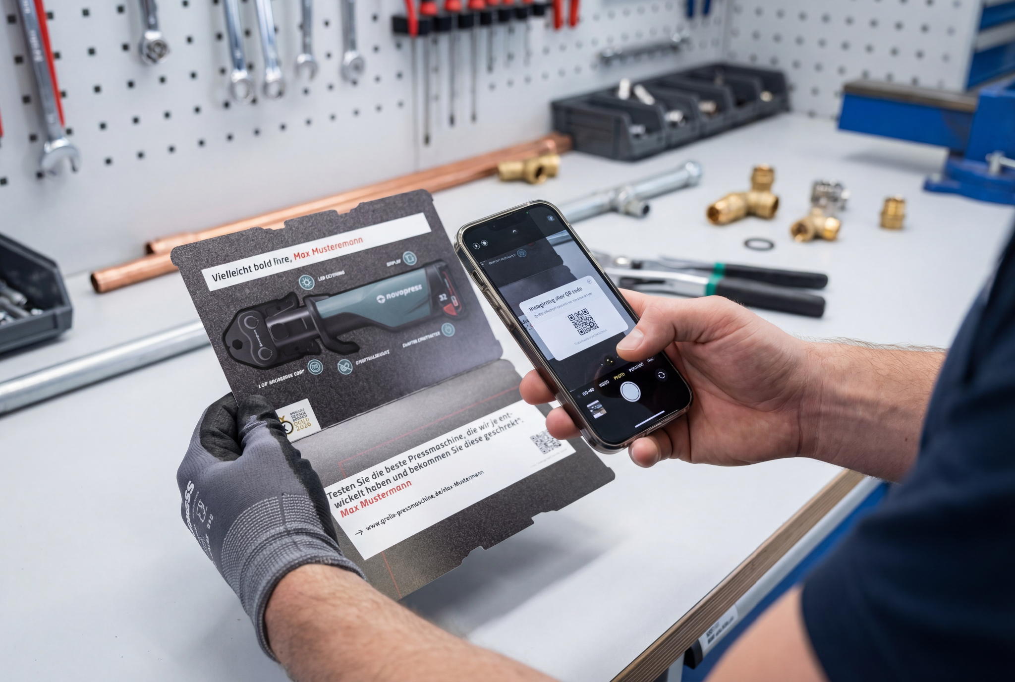 Der Offline-Kontakt sorgt für Aufmerksamkeit, die Landingpage liefert parallel detaillierte Infos, Videos, Downloads oder Tutorials, ohne den Arbeitsalltag zu stören. Jede Interaktion ist messbar – Klicks, Verweildauer, Downloads – und ermöglicht eine präzise Auswertung. Außendienst oder Sales können so gezielt reagieren und zwar zum genau richtigen Zeitpunkt.